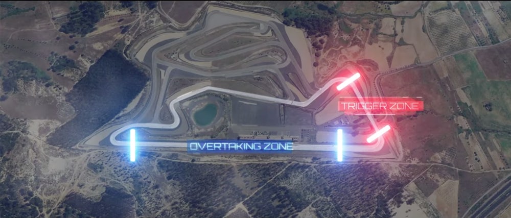 Автомобилям необходимо было проехать восемь кругов, но для того, чтобы избежать аварий, были установлены некоторые ограничения. Например, обгон разрешался только на главном прямом участке трассы и только по взаимному согласию. Если автомобили находятся достаточно близко друг к другу перед последним поворотом, в так называемой триггерной зоне, они должны запросить обгон у впередиидущего автомобиля.