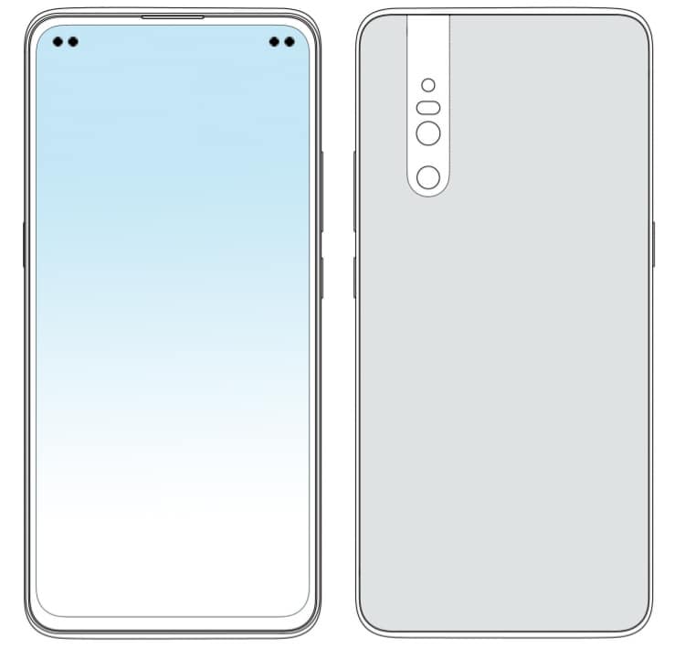 Патентная заявка также раскрывает внешний вид задней панели смартфона. Дизайн очень напоминает актуальные Vivo X27 или Vivo V15 с таким же вертикальным блоком тройной камеры слева и встроенной в него вспышкой. На правой стороне виднеются клавиши регулировки громкости и питания, на левой стороне предполагаемо находится отдельная клавиша для запуска голосового помощника Google Ассистент. Примечательно, что, несмотря на избавление от всех элементов, мешающих реализации полноценной безрамочности, в патенте Vivo всё же присутствует минимальный «подборок» на нижней стороне дисплея.