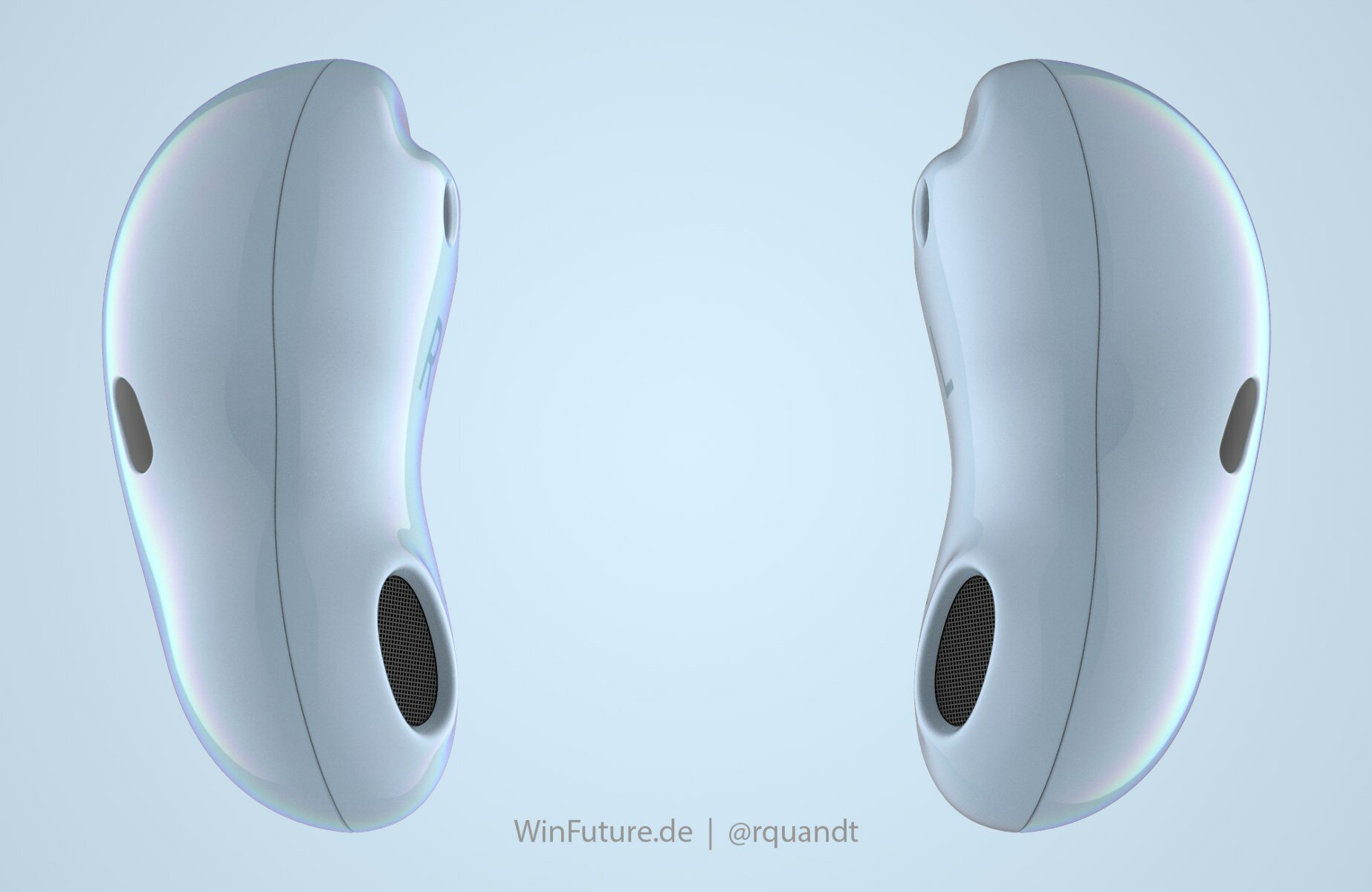 В распоряжении ресурса WinFuture оказались эскизы и рендеры новых наушников, которые подтверждают своё название. Судя по изображениям, их форма в точности напоминает эти плоды. Новый дизайн делает наушники более компактными. В отличие от существующих моделей Galaxy Buds, они прячутся в ушной раковине и практически не выступают из уха. Длина каждого наушника, предположительно, составляет 2,8 см. Но это не внутриканальные наушники, поэтому ещё не известно, насколько хорошо они будут держаться в ушах и подавлять окружающий шум.