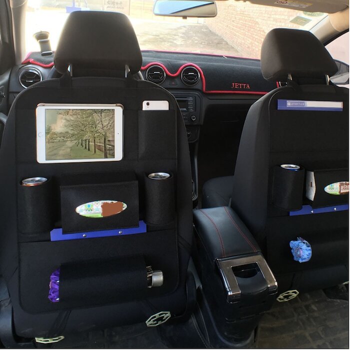 Лето началось, а значит, в ближайшее время большинство людей поедут на море, дачу, в лес или даже в другую страну на своих автомобилях. Вряд ли кому-то нравится продолжительная дорога, особенно пассажирам на задних сидениях, ведь им даже на дорогу смотреть не надо. Скрасить путешествие и сделать его комфортнее помогут органайзеры для сидений в автомобилях, и эти модели — одни из самых популярных. У них есть карманы под планшет, смартфон, журналы, две бутылки воды и зонт, а также отдельный открывающийся квадратный отсек под пачку салфеток или что-то схожего размера. Органайзер крепится на сиденье с помощью ремней и лямок — в случае чего, его запросто можно снять. Продавец предлагает 11 цветов.
