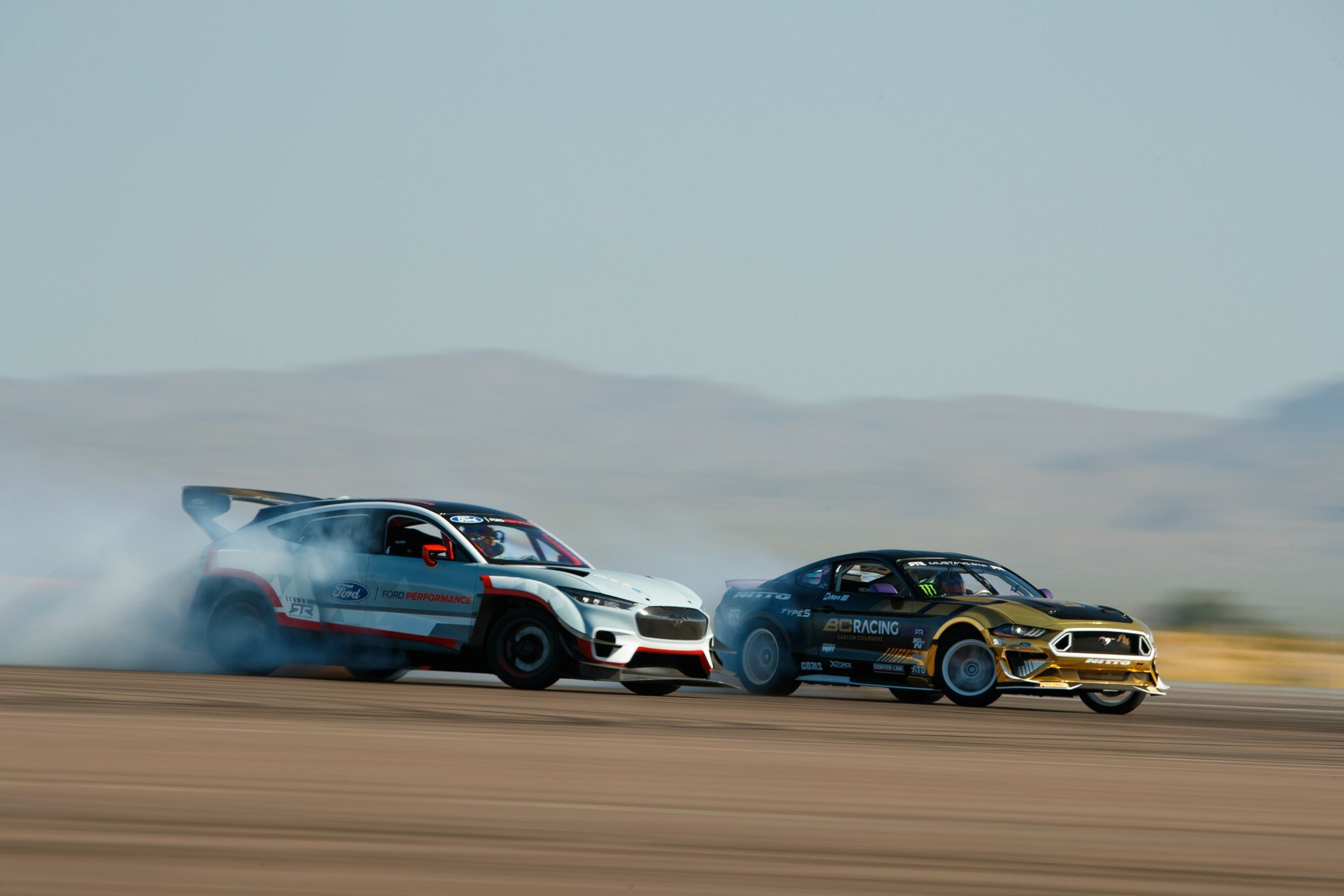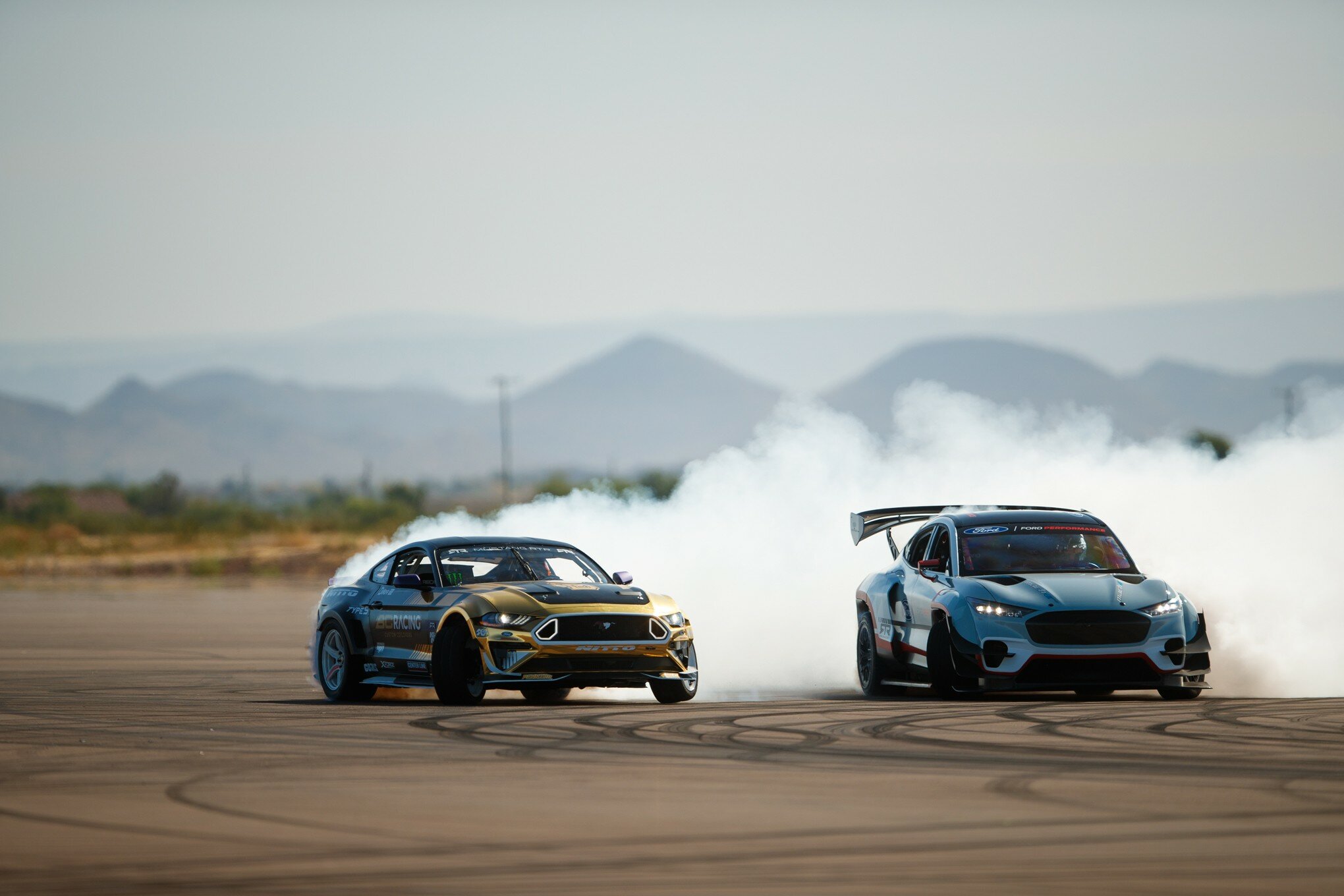 Что касается электродвигателей, то четыре из них приводят в движение задние колёса, а три остальные — передние. Автомобиль может работать в полноприводном, заднеприводном или переднеприводном режимах. Кроме того, на нём можно легко настроить режимы для драг-рейсинга, традиционной езды по гоночному треку или дрифта. На Mustang Mach-E 1400 дымят покрышки, и это не удивительно, поскольку в его создании непосредственное участие принимал профессиональный дрифтер Вон Гиттин-младший (Vaughn Gittin jr.). По имеющейся информации, Ford думал об участии в Formula E — электрической альтернативе Formula 1 и даже обсуждал эту возможность с командой Penske.