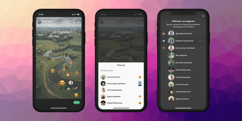 Вдохновившись фотоконкурсами, разработчики решили реализовать рейтинг моментов от пользователей, которые очень популярны среди пользователей социальной сети. Для расчёта данного рейтинга используется специальный сложнейший алгоритм, который будет учитывать количество просмотров у каждой отдельной истории пользователя и реакции на неё в течение семи дней.