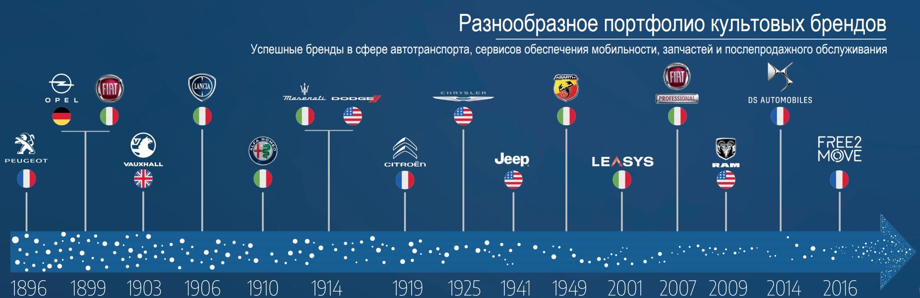 Итак, Stellantis в пресс-релизе называет себя мировым лидером новой эры экологичной мобильности, нацеленным на обеспечение свободы передвижения за счет уникальных, доступных и эффективных транспортных решений. И да, сразу видно, что в первую очередь компания смотрит в экологичное будущее. Электромобили и альтернативные источники топлива сейчас в тренде, но вот так взять и из ничего разработать новый и свежий электромобиль одному, пусть даже и крупному классическому автоконцерну, сложновато. На одни затраты R&D и разработку платформы уйдут годы и миллионы долларов. Поэтому компаниям приходится укрупняться, чтобы совместными усилиями разрабатывать автомобили будущего и при этом впоследствии иметь как уже готовые производственные мощности, так и дилерские сети по всему миру. Поэтому нет ничего удивительного в том, что Stellantis — это объединение всем известных американских и европейских автопроизводителей.