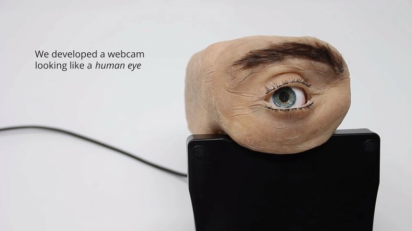 Марк Тейсье из Саарландского университета (Германия) в рамках своего исследования создал антропоморфную камеру, которая выглядит и ведёт себя как настоящий человеческий глаз. Теория о том, что кто-то постоянно следит через веб-камеру, в контексте этой разработки уже не кажется надуманной. Eyecam действительно наблюдает за пользователем, который сидит за компьютером.