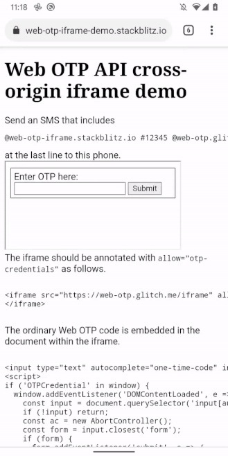 В Chrome 91 есть существенные улучшения в API WebOTP, который впервые был запущен в Chrome 84. Он позволяет сайтам получать одноразовые пароли, отправленные через SMS и используемые обычно для подтверждения авторизации. Chrome Beta 91 теперь позволяет iframe с перекрестным происхождением получать доступ к OTP-коду. Однако стоит учитывать, что эта функция должна быть реализована разработчиками, а онлайн-сервис или банк должен её поддерживать.