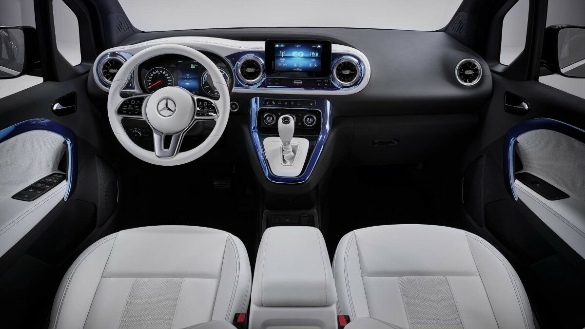 А вот в салоне сходство с Renault Kangoo очень заметно — скрыть это не удалось даже опытным дизайнерам Mercedes-Benz. Естественно, была заменена приборная панель, дверные карты и мультимедийная система, но общие черты никуда не делись. Впрочем, у концепта дизайн получился куда более привлекательным и современным. К сожалению, представители компании ничего не сообщили о техническом оснащении Mercedes-Benz EQT Concept — известно лишь то, что будет комплектация на электрической силовой установке и на обычном ДВС. Премьера серийных моделей должна состояться до конца года, тогда же производитель расскажет все детали.