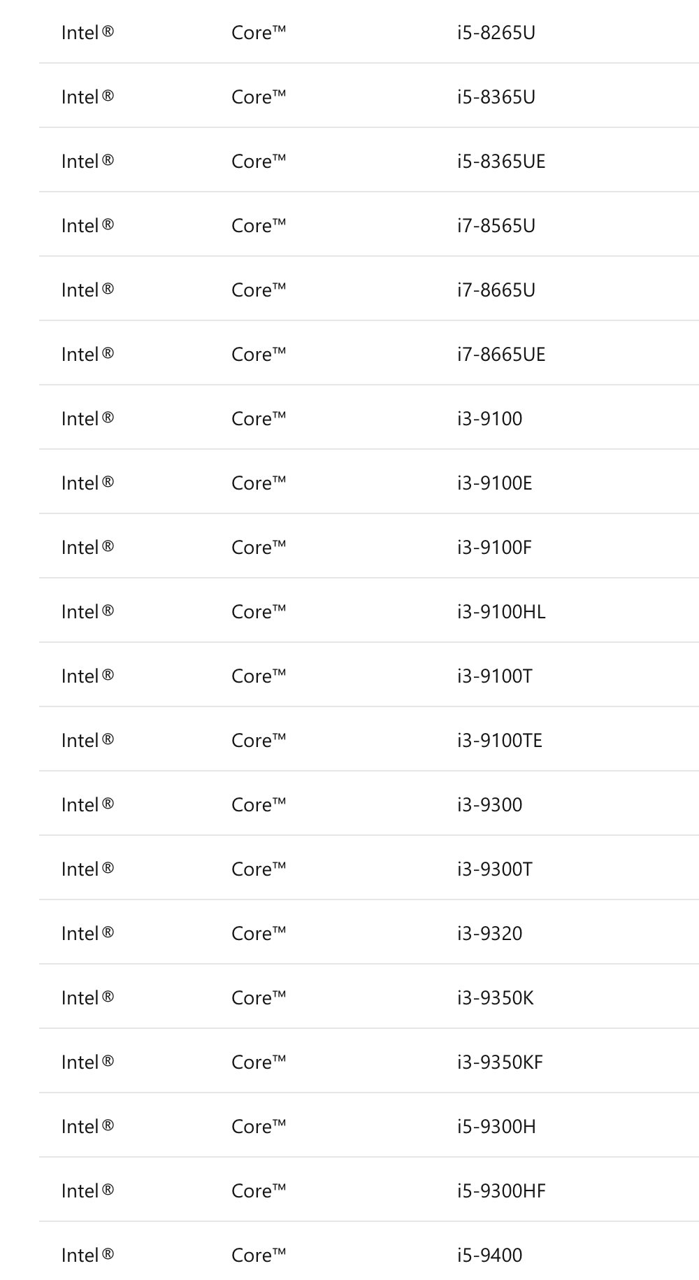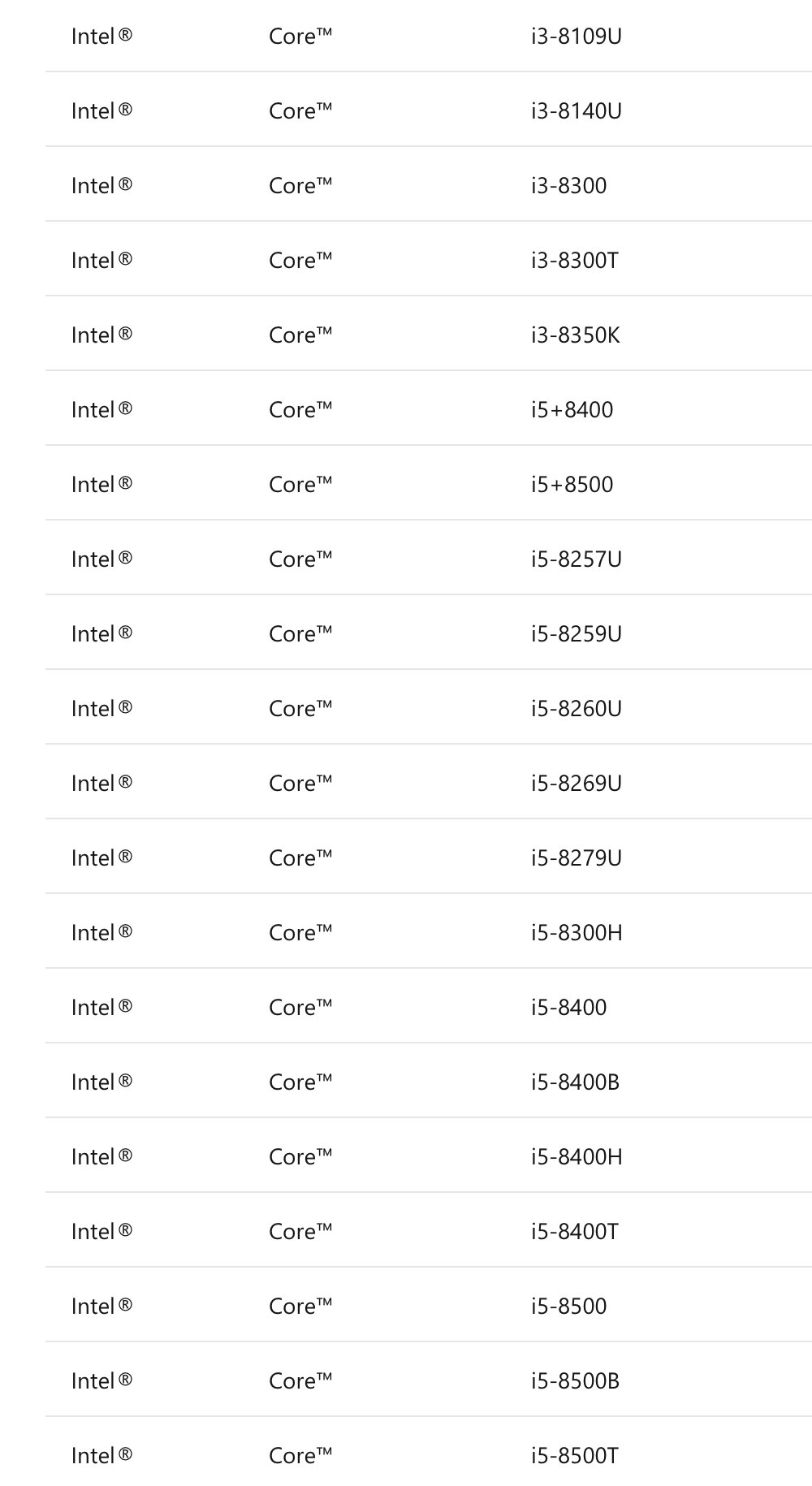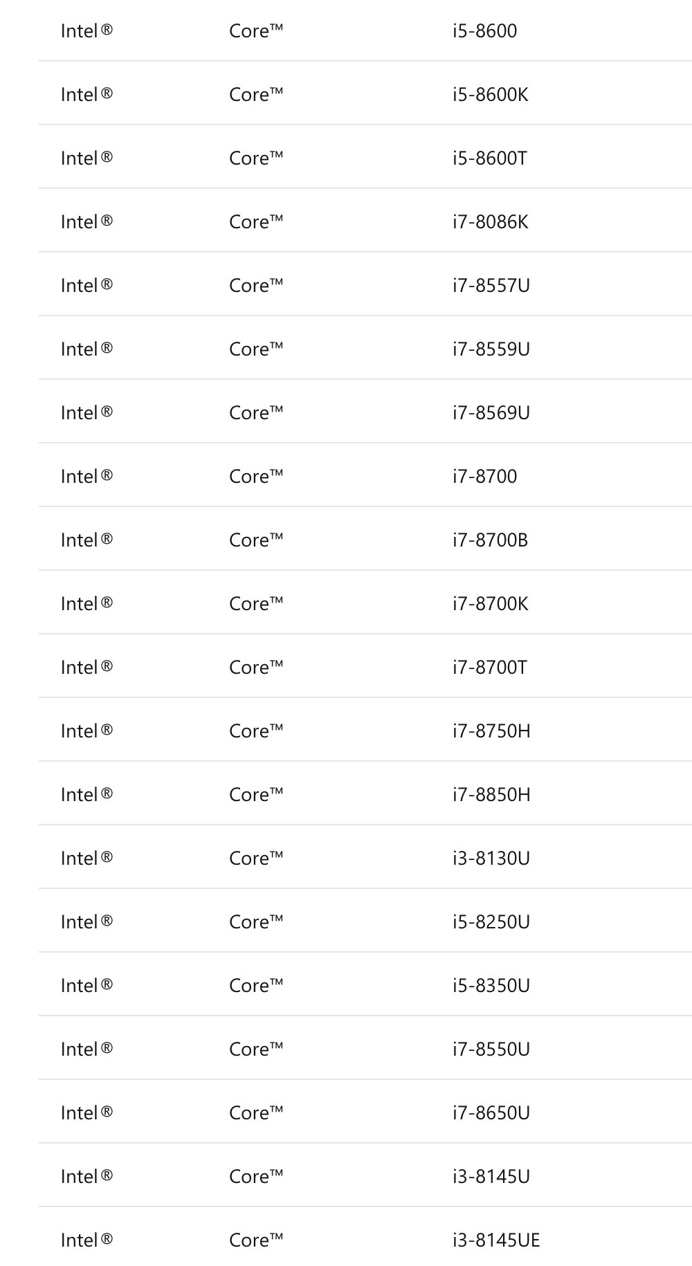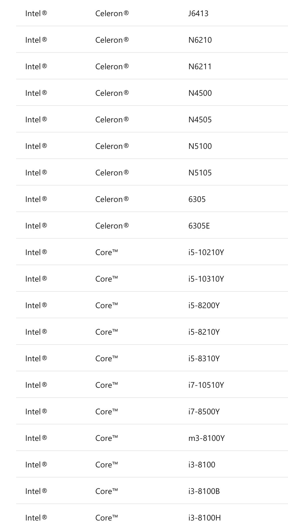 Список достаточно обширный. Новая ОС будет работать только на 64-битных платформах с двумя и более ядрами