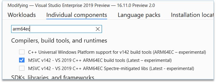 ARM64EC представляет собой двоичный интерфейс приложения (ABI), совместимый как с естественной архитектурой процессоров ARM64, так и с эмуляцией x64. Приложение целиком, отдельный процесс или даже модуль могут зависеть от x64, поэтому ARM64EC предоставляет возможность работать в интегрированном режиме наполовину — ключевую часть базы можно перенести на ARM64EC для налучшей производительности и автономности, тогда как любой код x64 будет выполняться в эмуляции. Microsoft отмечает, что технология существенно увеличит скорость работы изначально несовместимых приложений для Windows 11 на ARM, приблизив их к нативному уровню.