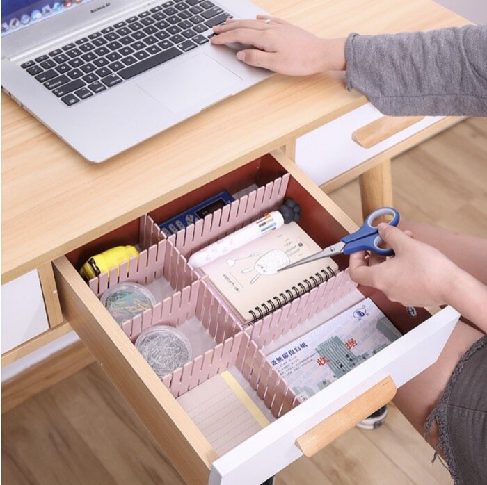 Ящики в письменных столах очень пригождаются, ведь в них можно сложить все те вещи, которые обычно валяются сверху. Но проблема в том, что весь хаос с верхушки просто в таком же виде прячется в ящик — избежать беспорядка помогают разделители-органайзеры. Они представляют себой нечто вроде искусственных стенок-барьеров, которые создают в ящике ячейки с шириной и длиной, которую каждый выберет для себя сам. Продавец продаёт по два разделителя, которые в случае чего можно разрезать. Единственное — многие россияне отмечают, что тонкий пластик ломается в процессе доставки почтой.