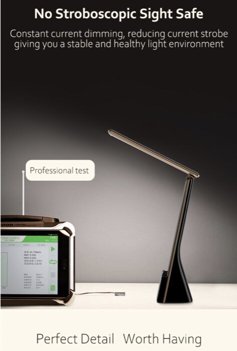 Особенность этой лампы заключается в универсальности, и это касается как конструкции, так и работы. Её механизм позволяет ножке у основания наклоняться на 120°, изгибу разгибаться на 120° и головной части вращаться на 360° вокруг своей оси. Также можно регулировать цветовую температуру и яркость. Лампа состоит из 36 светодиодов, которые не излучают вредный для глаз свет (по заверениям производителя). На выбор доступны три модели: базовая питается только от сети, есть версия с аккумулятором, а наилучшая модификация предлагает ещё и пульт дистанционного управления.