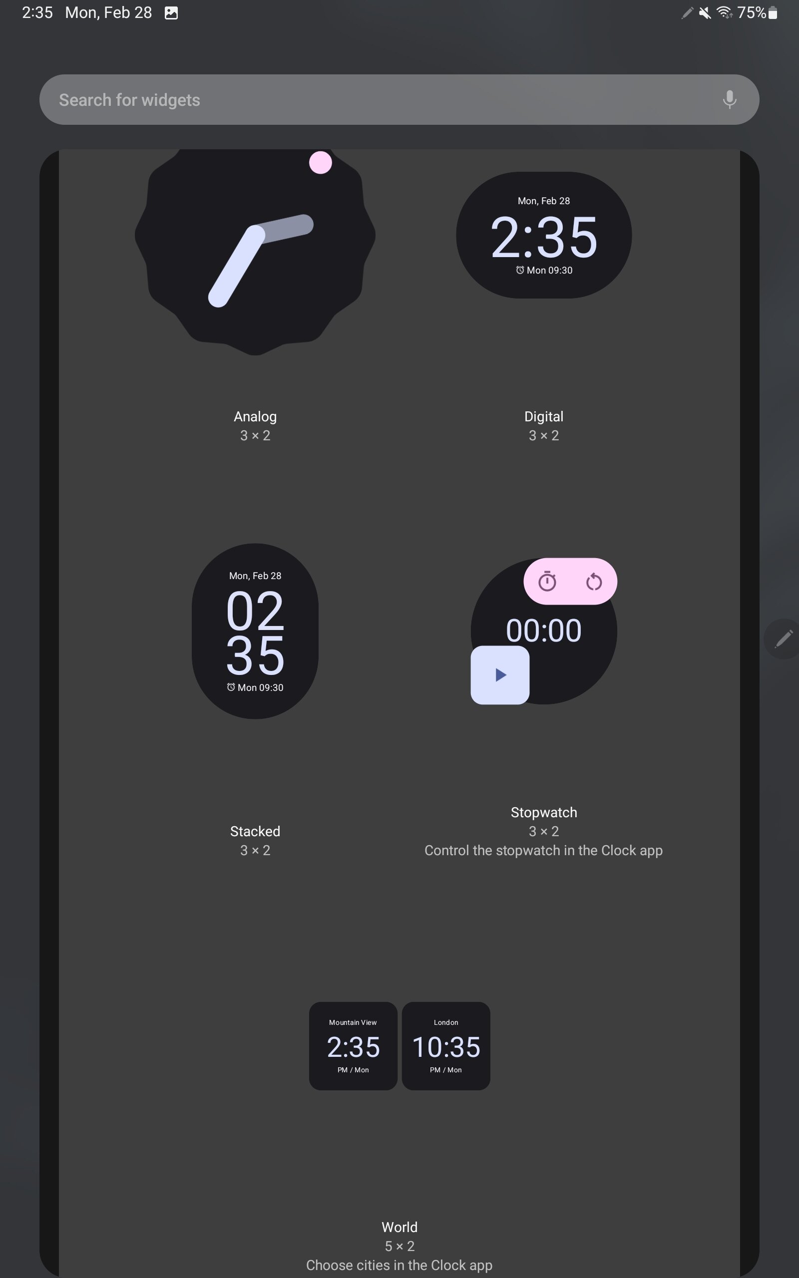 - «Часы» — виджет часов красуется на рендерах новых Pixel, но он доступен любым устройствам (все его 5 вариаций).