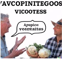 К примеру, по запросу «Два фермера говорят об овощах, с субтитрами» нейросеть генерирует следующую картинку: