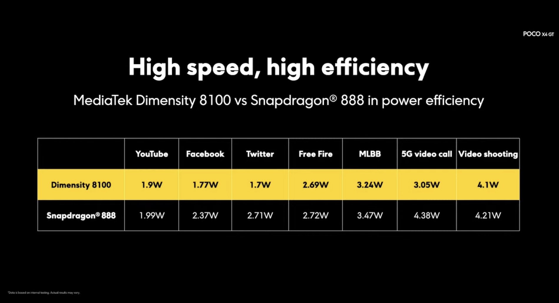Стоит отметить, что производитель не отказался и от процессора Dimensity 8100, хотя в сети можно встретить мнение, что аналог от Qualcomm в лице Snapdragon 888 лучше. Это как минимум неоднозначно, и Xiaomi доказывает на примере: при сопоставимой производительности, китайский чипсет потребляет меньше энергии в повседневных задачах и слабее греется.
