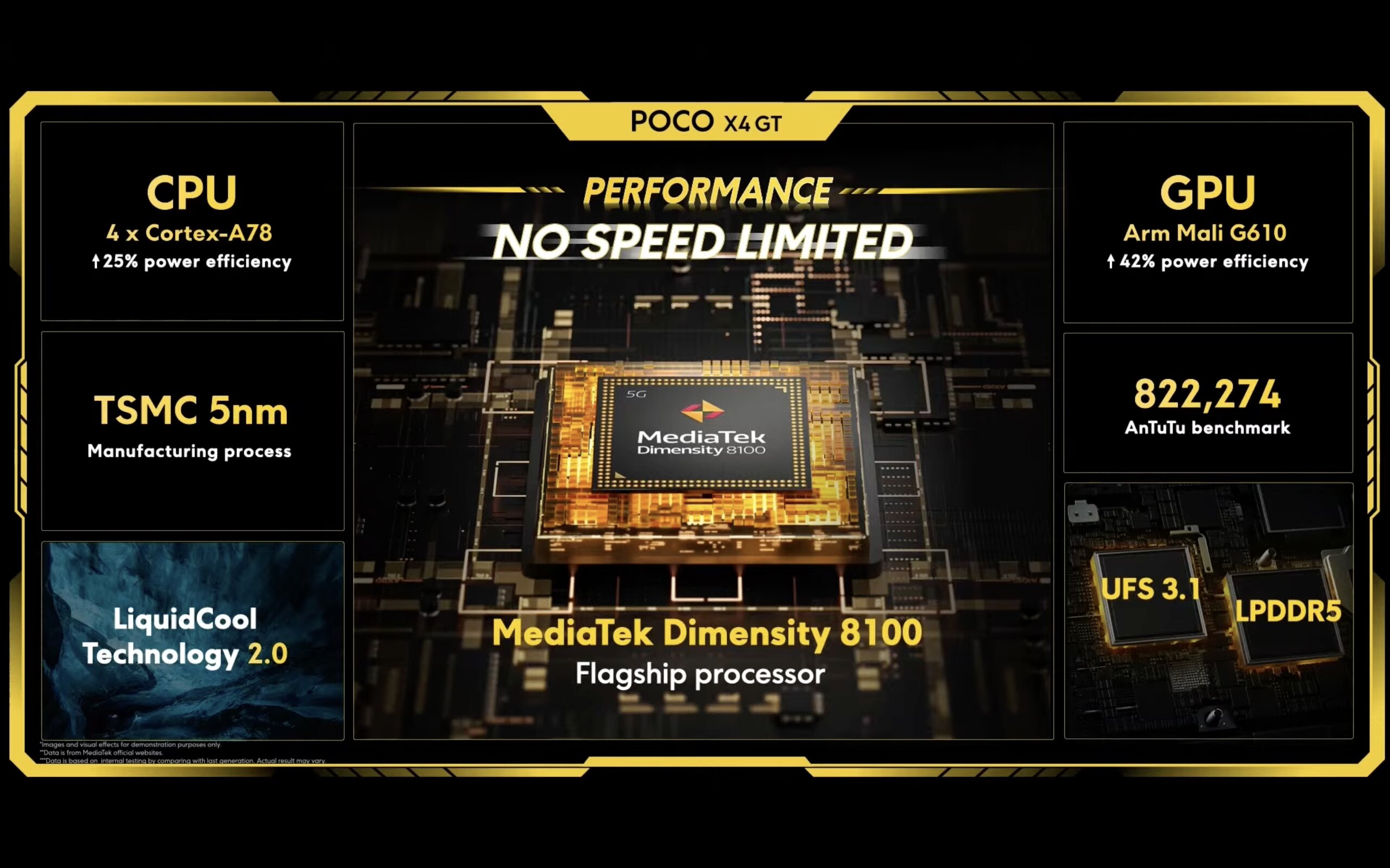 - Процессор: MediaTek Dimensity 8100, 5 нм.