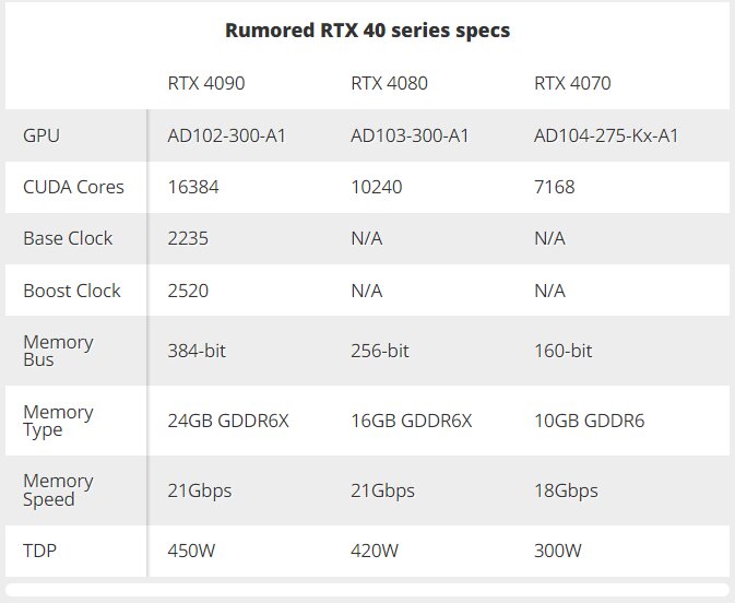 Скорее всего эта отметка будет достигнута видеокартой RTX 4090 Ti, которая, если верить инсайдерам, будет поставляться с графическим чипом AD102 — он получит ещё более высокие базовые частоты. И, соответственно, при эффективном охлаждении пользователь сможет разогнать флагманскую видеокарту до отметки в 2,8-3,0 ГГц, хотя, скорее всего, это будет развлечение для энтузиастов, так как видеокарта на пределе своих возможностей долго не проработает. А вот RTX 4080 и RTX 4070, судя по информации того же инсайдера, сильно геймеров не удивят — это будет условный апгрейд RTX 3080.