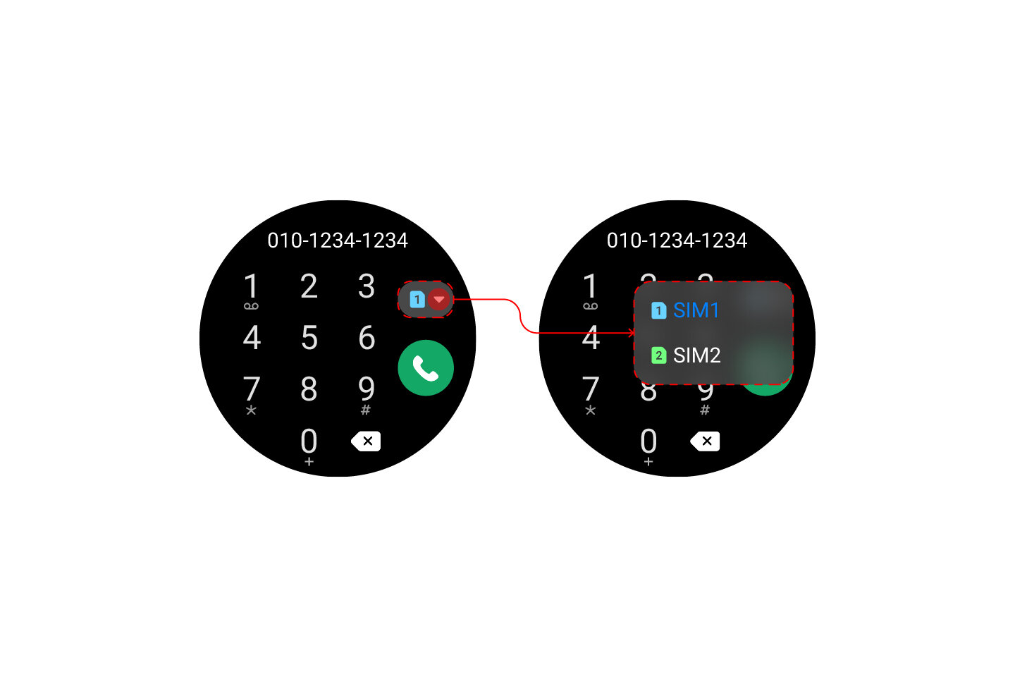 Встроенная QWERTY-клавиатура получила поддержку набора текста с помощью свайпа, диктовки или распознавания рукописного ввода. Стабильная версия One UI Watch 4.5 научилась работать с двумя SIM-картами. Теперь можно выбирать, какую SIM-карту использовать при совершении звонка или отправке сообщения. Соответствующие изменения добавлены в интерфейс, там видно, какая SIM-карта используется в данный момент, а переключение между «симками» происходит на часах в окне номеронабирателя.