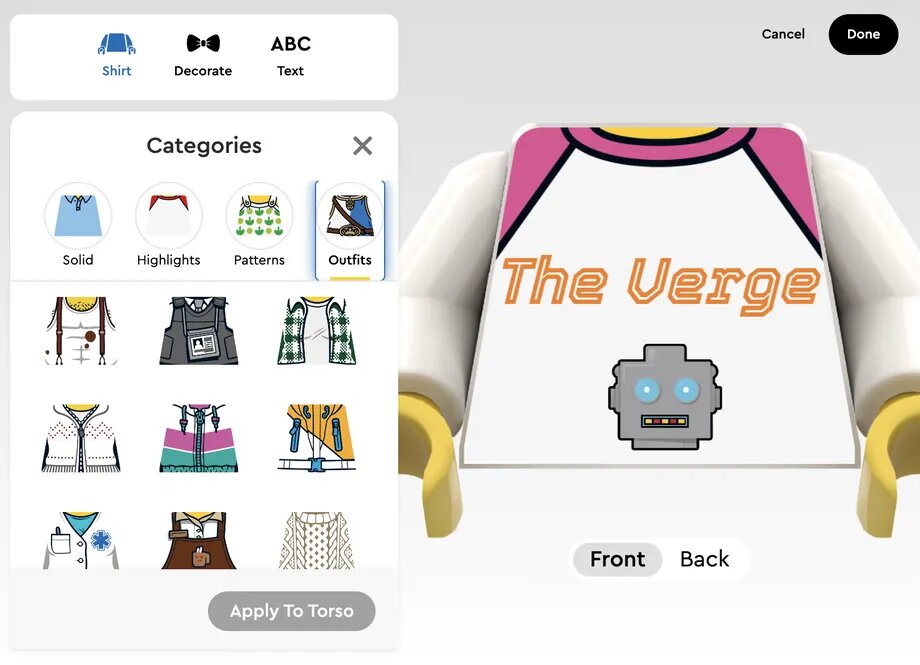 Для этого компания запустила онлайн-конструктор минифигурок Minifigure Factory, который предоставляет всем желающим создать своего уникального персонажа во вселенной LEGO. Конструктор на самом деле достаточно продвинутый — пользователь может выбрать один из нескольких вариантов головы, после чего применить максимально приближенную к реальности причёску, затем настроить торс, ноги и аксессуары. Наиболее глубокая проработка получилась именно у торса — здесь можно выбрать рисунок, цвет, добавить мелкие рисунки и даже написать текст. И, естественно, торс разделён на переднюю и заднюю части, так что можно реализовать самые различные фантазии в дизайне.
