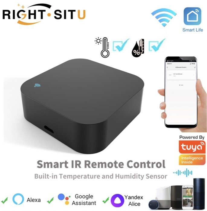 Умные гаджеты отличаются от обычных как минимум тем, что могут запускаться со смартфона или от голосовой команды. Если такого функционала нет, то девайс всё же можно сделать умным с помощью специального пульта. Эта миниатюрная коробочка является неким устройством-посредником между вами и конечным аппаратом — вы передаёте команды именно ей (по Wi-Fi, можно даже не из дома), а она уже отсылает их любым подключённым гаджетам по ИК-порту. Эта модель также позволяет установить таймер и создать настоящую автоматизацию, задавая правила включения и выключения устройств. Ещё она оснащена термометром и датчиком влажности для более гибкой автоматизации других гаджетов, но если это лишнее, то стоит присмотреть более дешёвый вариант от того же производителя (530 рублей).