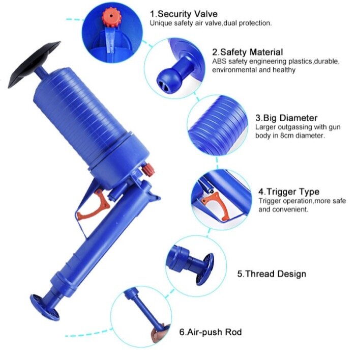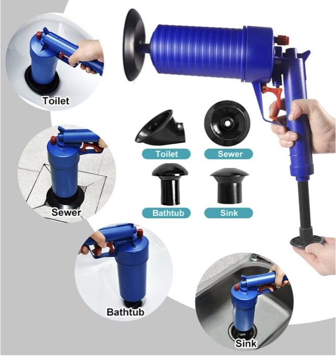 Если вам хоть раз приходилось сталкиваться с забитой трубой раковины или, того хуже, унитаза, вы наверняка знаете всю проблемность и неприятность процесса её очистки. Впрочем, всех трудностей можно избежать, если есть подобный пневматический вантуз. Он в буквальном смысле выстреливает мощным напором воздуха, пробивающим различного рода засоры. Никакие баллоны со сжатым воздухом не нужны — достаточно самому накачать воздух с помощью специального насоса (как в детском водном пистолете). В комплекте идут четыре насадки для труб разного диаметра, среди них есть специальная для унитаза.