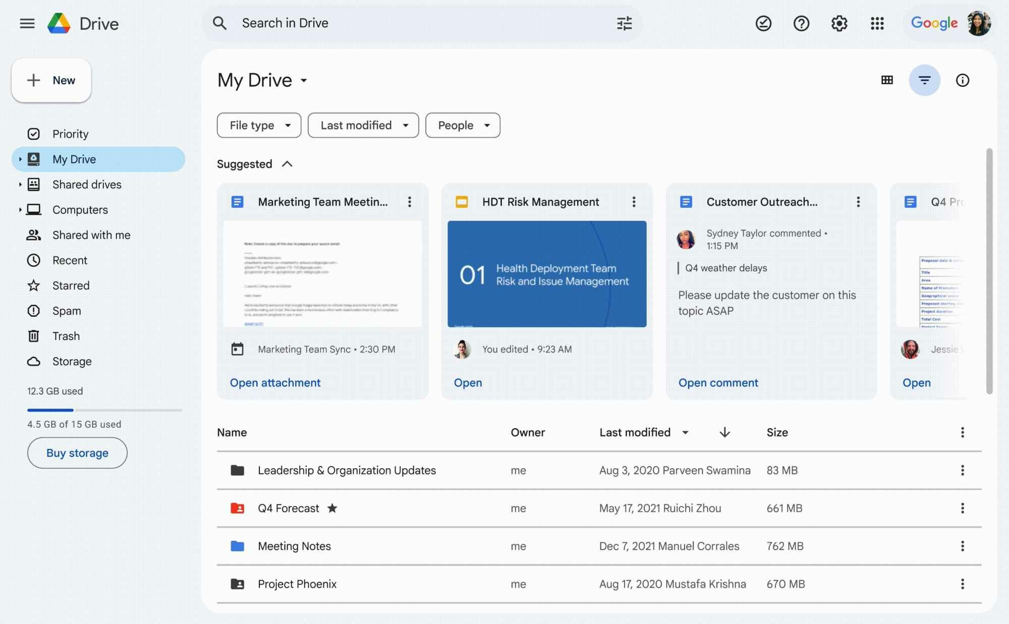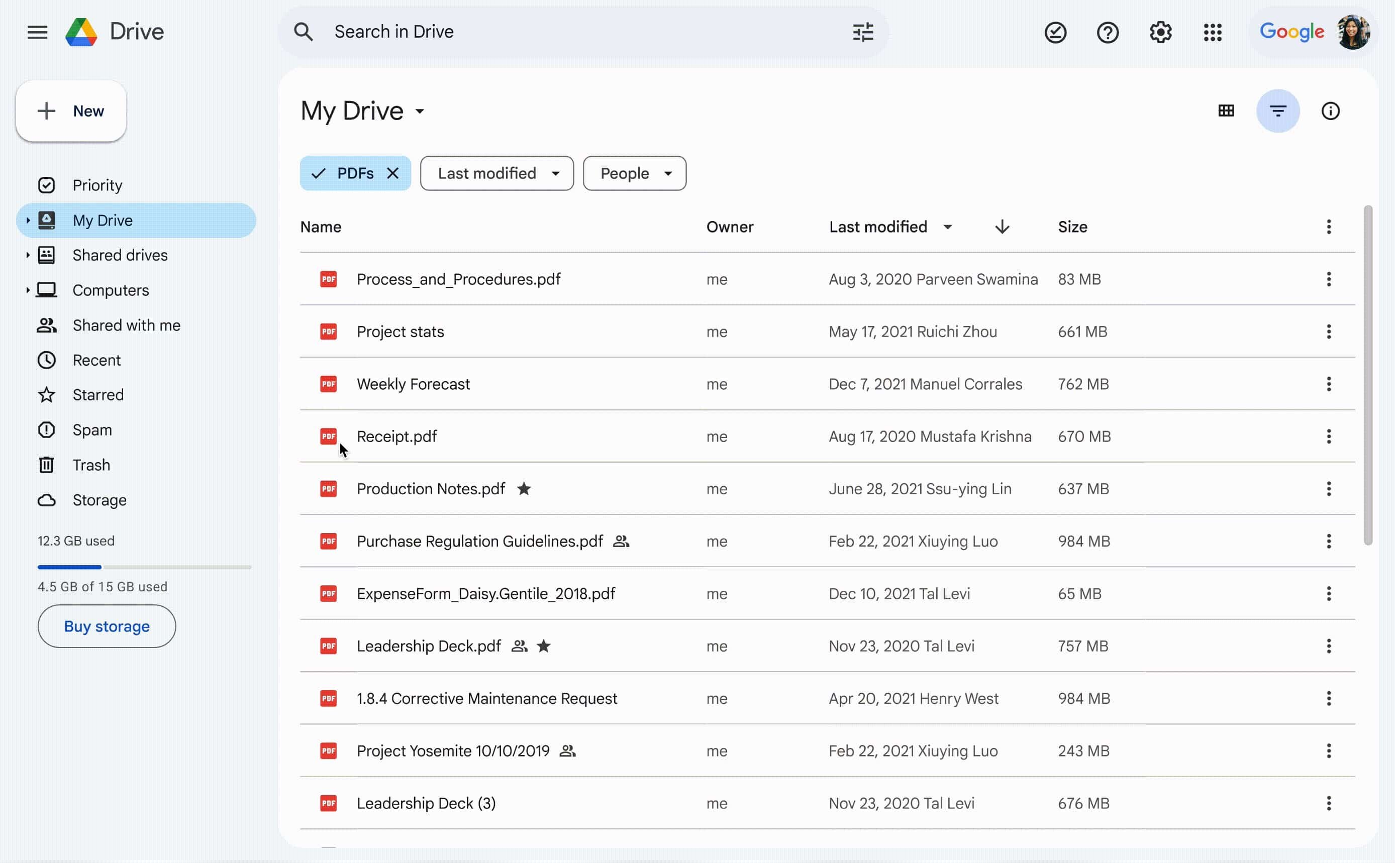 Редизайн «Google Диска» очень напоминает таковой в Gmail: многие разделители строк исчезли, а списки файлов отображаются в белом «контейнере» с закруглёнными углами. При этом заголовки разделов стали крупнее, а под ними появились фильтры для быстрого поиска файлов по их типам, дате последнего изменения или владельцам.