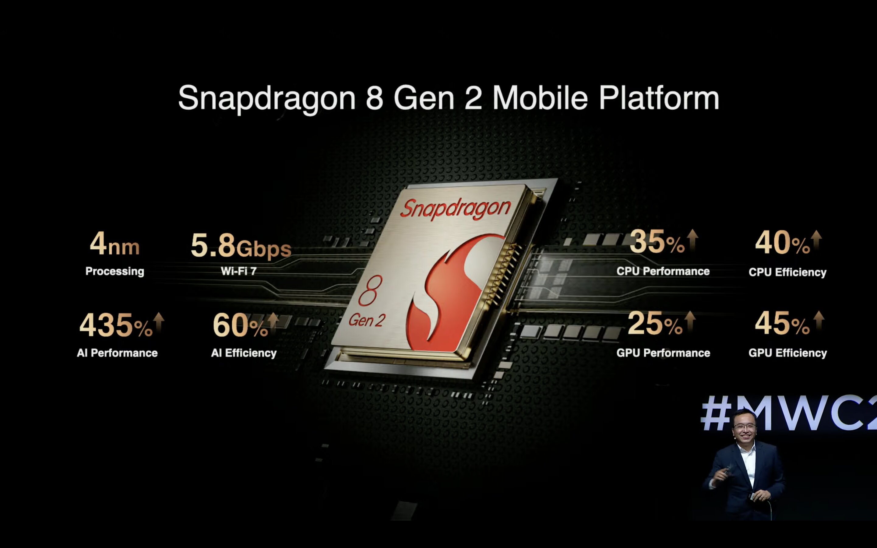 - Процессор: восьмиядерный Qualcomm Snapdragon 8 Gen 2 (4 нм), Adreno 740.