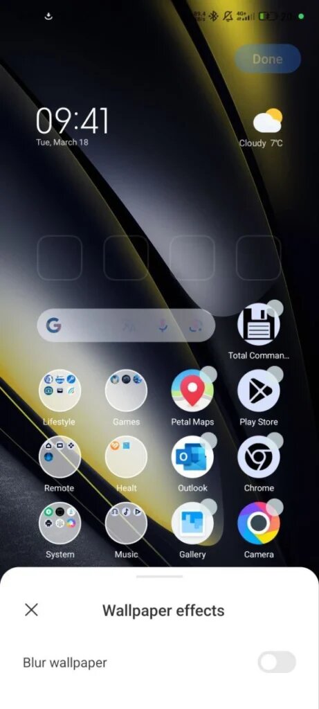 Чтобы воспользоваться новым инструментом, потребуется обновить несколько приложений: POCO Launcher, Wallpaper app и Always on Display app. Когда будут установлены последние версии данных приложений, следует выполнить следующие шаги, чтобы опробовать размытие обоев: