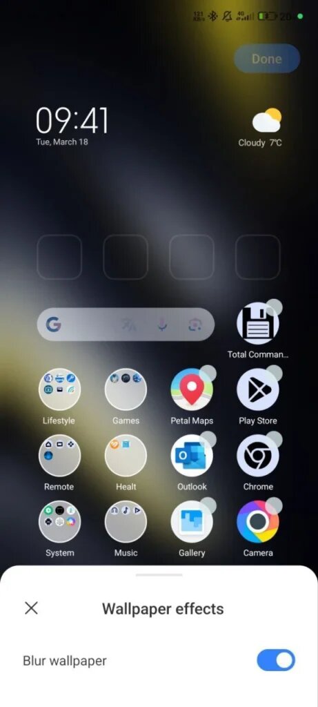 - найти опцию Blur wallpaper («Размытие обоев»);