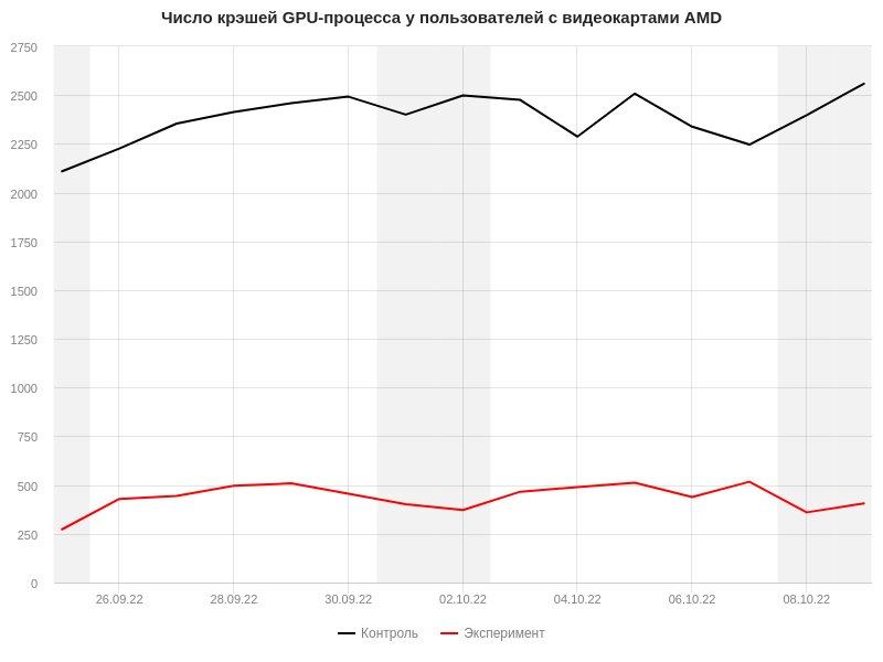 Результаты на тестовых компьютерах с видеокартами AMD удивили: количество падений GPU-процесса снизилось в 5,5 раз, расход памяти уменьшился в среднем на 8%, а также немного повысились скорость открытия страниц и общая отзывчивость браузера. Это свидетельствует о том, что в драйверах AMD на самом деле есть фикс, применяющийся для избранных приложений (в частности — для chrome.exe).