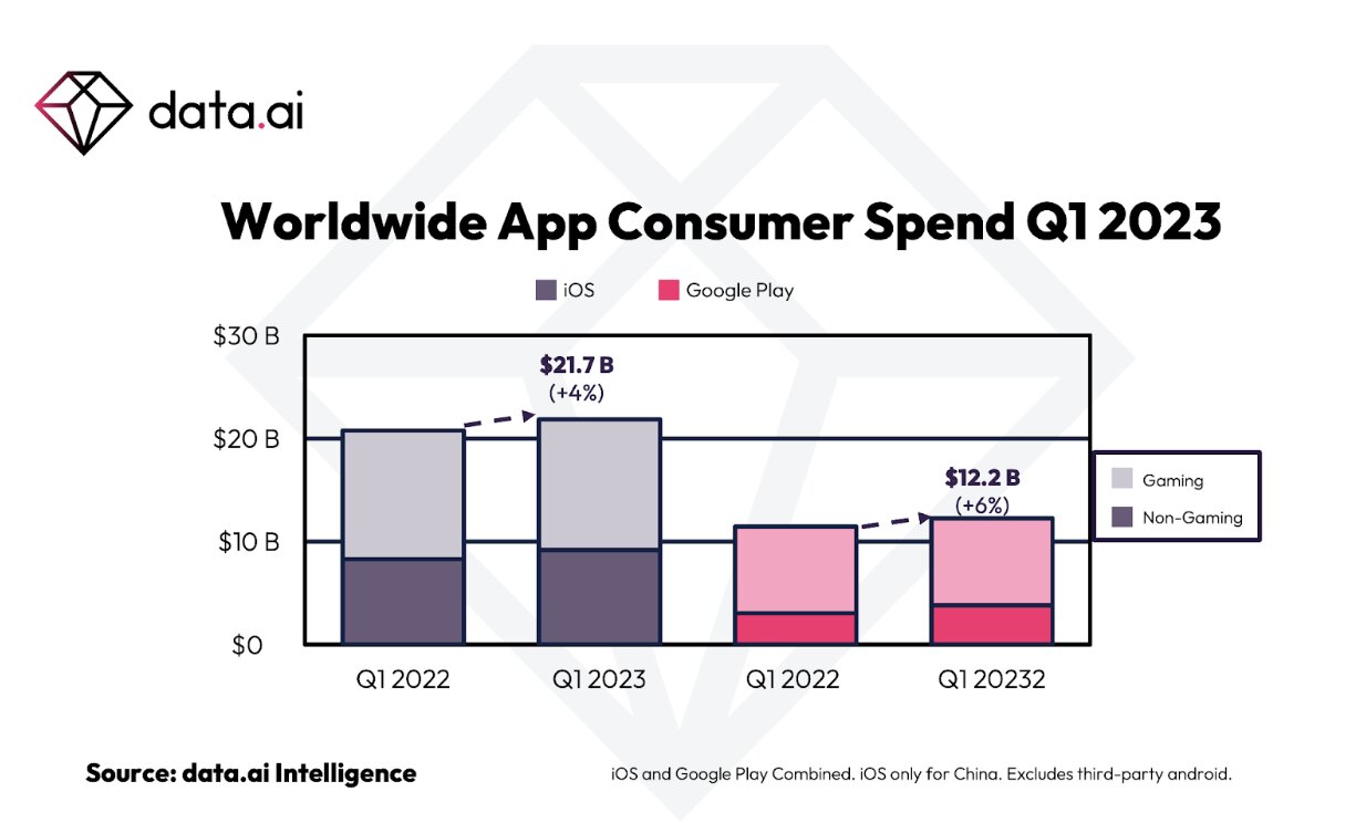 Согласно исследованию, рынок приложений демонстрирует признаки устойчивости, несмотря на экономические проблемы во всём мире. В первом квартале 2023 года пользователи мобильных устройств потратили в магазинах приложений больше, чем в любом другом квартале за всю историю наблюдений. Сумма расходов достигла рекордные 33,9 млрд долларов, количество загрузок также выросло почти на 3%. Аналитики считают, что это своего рода коррекция рынка, которая в равной степени распределена между мобильными платформами iOS и Android. На первую пользователи потратили на 4% больше в годовом исчислении, а на вторую — на 6%. App Store заработал 21,7 млрд долларов, а Google Play — около 12,2 млрд долларов.