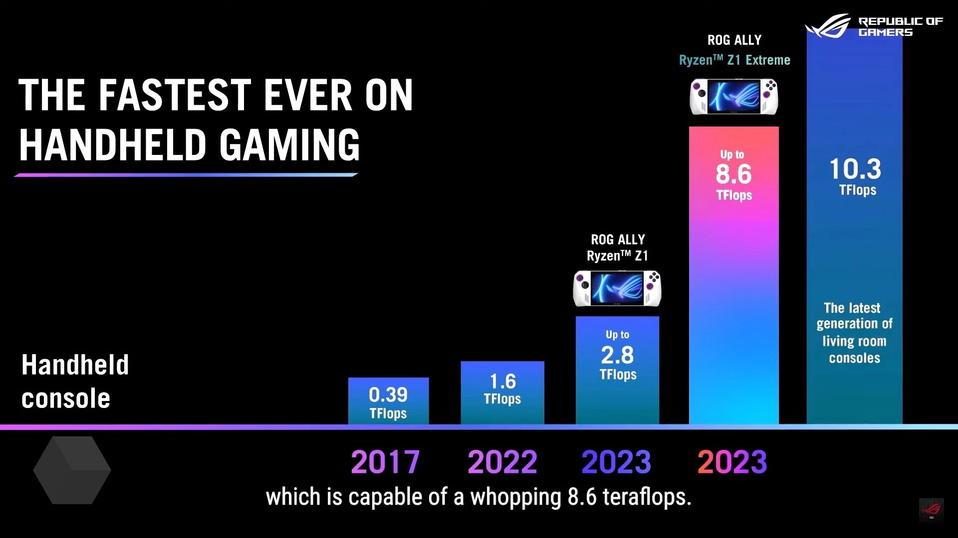 Сегодня, 11 мая, компания ASUS официально представила первую в своей истории портативную консоль ROG Ally, которая станет основным конкурентом Steam Deck от Valve. На рынок поступит две версии, отличающиеся друг от друга мобильным процессором: первая получила модель AMD Ryzen Z1 с 6 ядрами, 12 потоками и производительностью до 2,8 Тфлопс, вторая — AMD Ryzen Z1 Extreme c 8 ядрами, 16 потоками и производительностью до 8,6 Тфлопс.