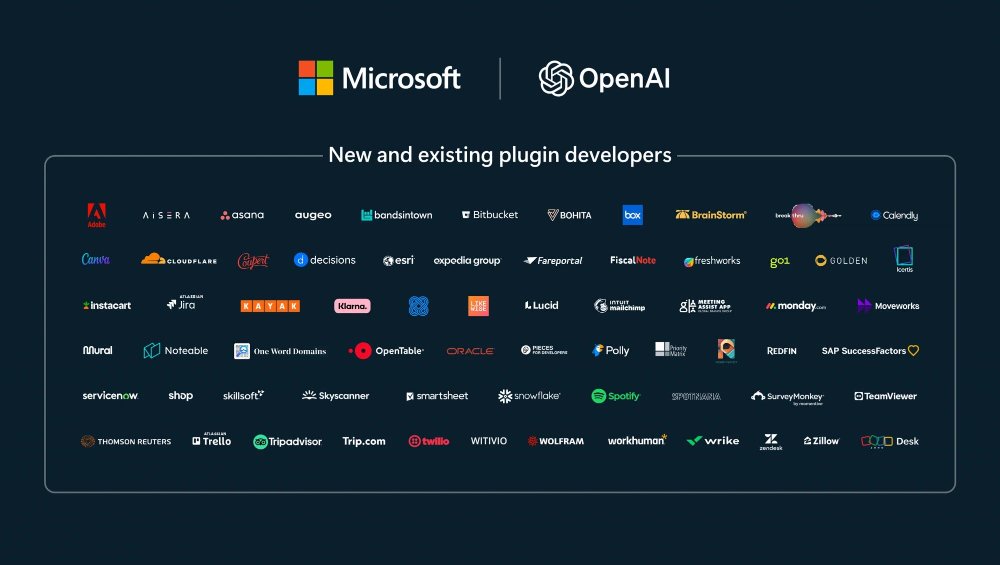 Кроме того, Microsoft ещё заявила об объединении с OpenAI в области расширений для фирменных систем искусственного интеллекта. Отныне у партнёров общая платформа, позволяющая задействовать решения OpenAI в Bing и продукты Microsoft в ChatGPT, включая плагины от независимых разработчиков. Таким образом, в ChatGPT, потребительское и корпоративное программное обеспечение Microsoft с ИИ можно добавлять одни и те же разработки. Adobe, Atlassian, Spotify, ServiceNow и ещё около 50 разработчиков уже готовят модули такого рода и они же заработают, например, в офисном пакете Microsoft 365 Copilot и предстоящем ассистенте Windows Copilot в Windows 11.