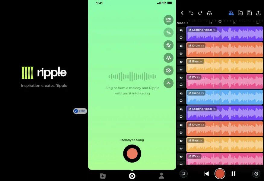 Ripple может создавать песни в разных жанрах на основе мелодии, которую напевает пользователь. Приложение предлагает сделать это в микрофон смартфона, а затем генерирует инструментальные партии, такие как барабаны, бас и фортепиано. Однако стоит учесть, что продолжительность трека будет соответствовать длительности мелодии, которую напел пользователь. Кроме того, Ripple может генерировать только инструментальную музыку, вокал не записывает.