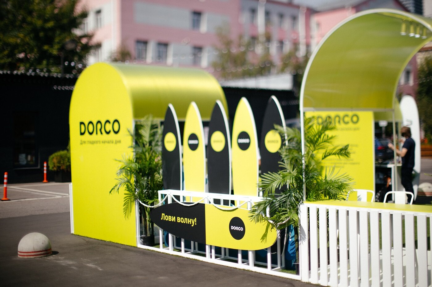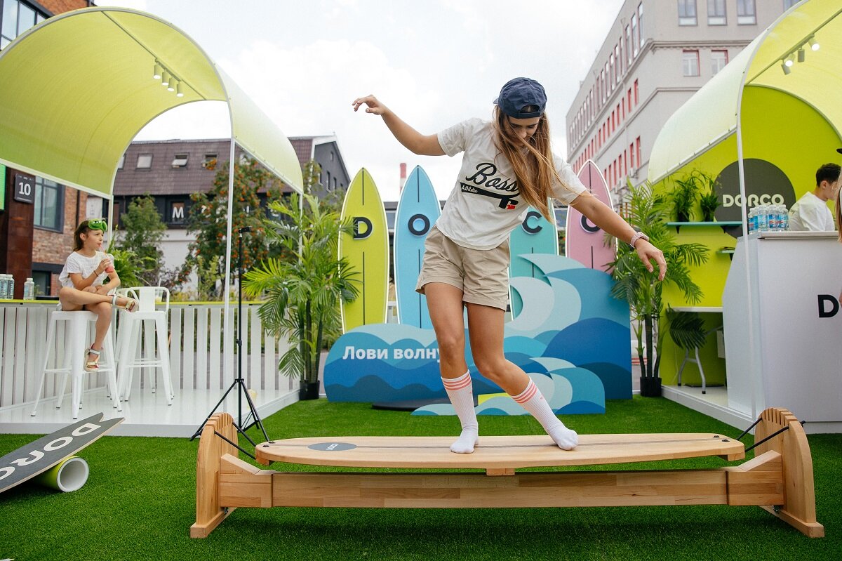 Мероприятие проводится с 10:00 до 22:00. В это время посетители креативного пространства могут опробовать свои силы на специальных сёрф-тренажёре и балансборде. Начиная с 14:00 до 18:00 базовые уроки сёрфинга дают профессионалы школы Surfway. Первый урок всегда проходит на суше, и для этого в DORCO установлен уникальный тренажер. С его помощью можно попробовать разные стили океанического сёрфинга: от pop-up до hang 5. Как говорят организаторы мероприятия, даже для столичных жителей этот тренажёр — диковинная штука.