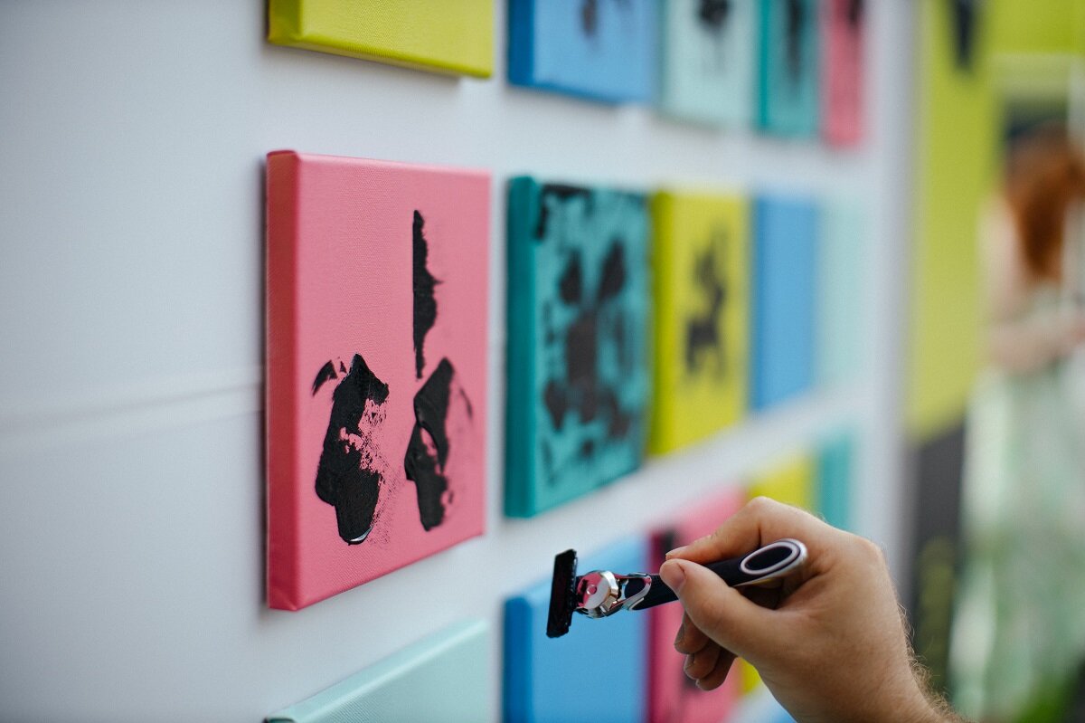 После активного отдыха можно полюбоваться тридцатью абстрактными картинами в цветах бренда DORCO, созданными художником Евгением Ches. На своих полотнах он переосмыслил движения людей во время бритья, разбавив краски станками от южнокорейской компании. Здесь можно увидеть DORCO PACE 7 — это первая бритва в мире с семью лезвиями.