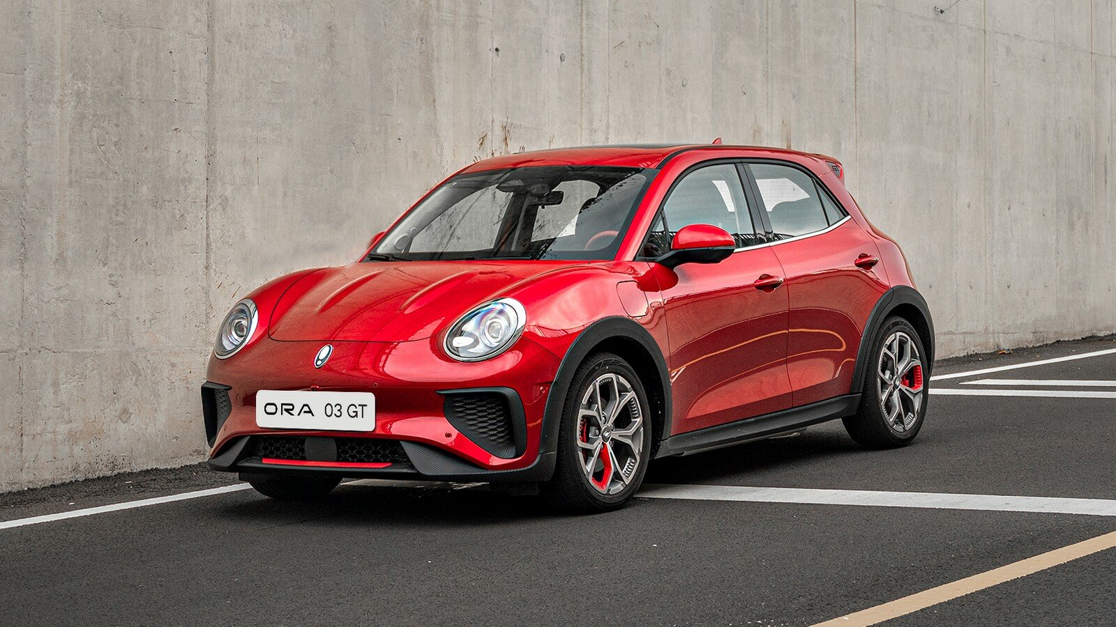 Версия Ora 03 GT отличается дизайнерскими акцентами в экстерьере: красными вставками, спойлером и другими колёсными дисками. Салон выполнен в одном варианте — красно-чёрном с хромированными вставками.
