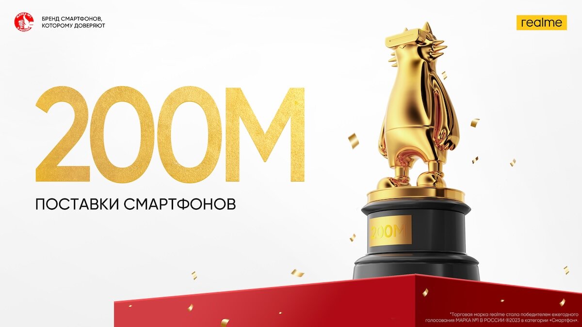 Сегодня, 27 ноября, компания Realme официально заявила, что ей удалось продать свыше 200 миллионов смартфонов по всему миру, благодаря чему бренд уверенно вошёл в довольно элитный «Клуб 200 миллионов». Стоит отметить, что совсем недавно, в 2021 году, компания достигла отметки в 100 миллионов проданных смартфонов, то есть всего за два неполных года производителю удалось удвоить свой «тираж». Более того, компания вышла на рынок в роли небольшого стартапа в 2018 году, когда в сегменте было представлено более 700 различных брендов — от производителей доступных решений до компаний, выпускающих исключительно дорогие флагманы.