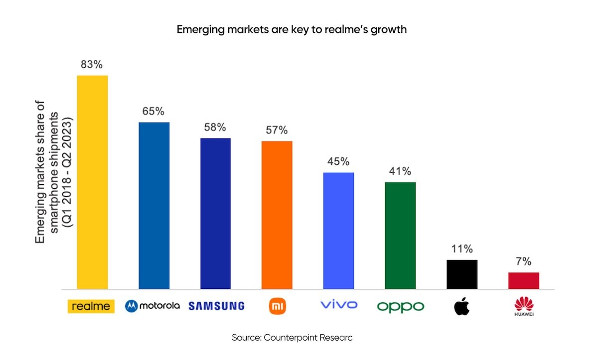 Самое интересное в том, что Realme активно покоряет развивающиеся рынки — в структуре продаж компании эти страны занимают 88% от всех поставок, что заметно больше, чем у потенциальных конкурентов. И, безусловно, львиную долю в успехе компании играют новые разработки — в Realme это прекрасно понимают и планируют увеличить инвестиции в область научно-исследовательской работы в 2024 году на 470%. За счёт этого новые технологии, функции и возможности должны появляться чаще и лучше, плюс бренд сможет конкурировать в важных для себя сферах на более высоком уровне.