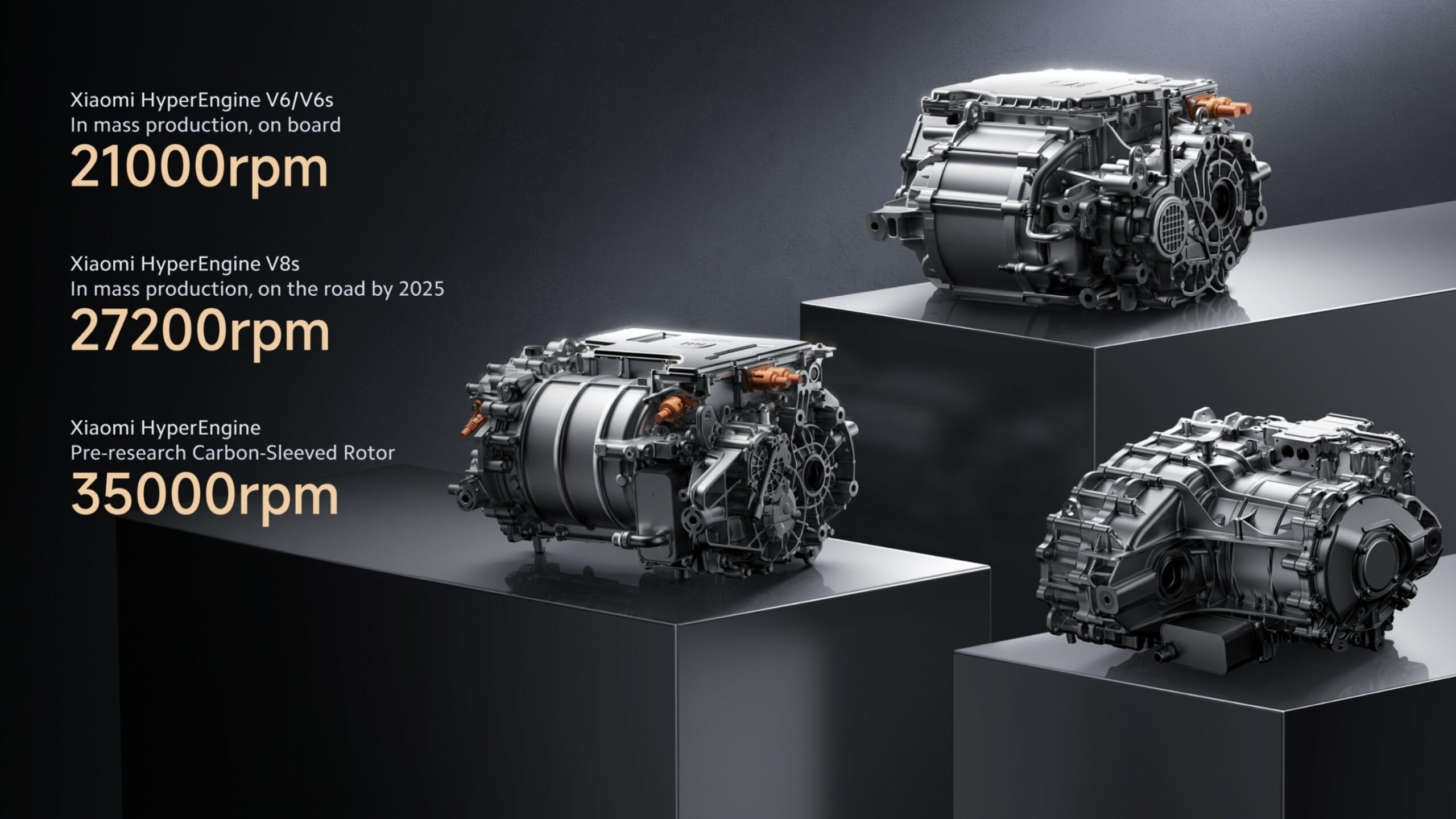 Сегодня, 28 декабря, информационное издание IT House сообщило, что компания Xiaomi в рамках конференции Automotive Technology Conference официально представила сразу три электрических мотора, которые в обозримом будущем будут установлены в электромобилях китайского гиганта. Флагманом линейки выступает мотор Xiaomi V8, основным преимуществом которого является заявленный параметр в 27 200 оборотов в минуту — это первый мотор в мире, способный демонстрировать подобную скорость вращения (для примера, в среднем бензиновый мотор может предоставить до 6 000 оборотов в минуту).