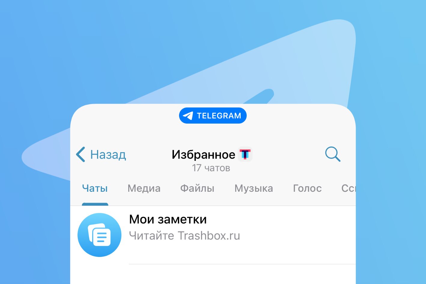 - Сообщения без вложений файлов (состоящие только из текста) и ссылки автоматически отправляются в отдельный чат «Мои заметки».