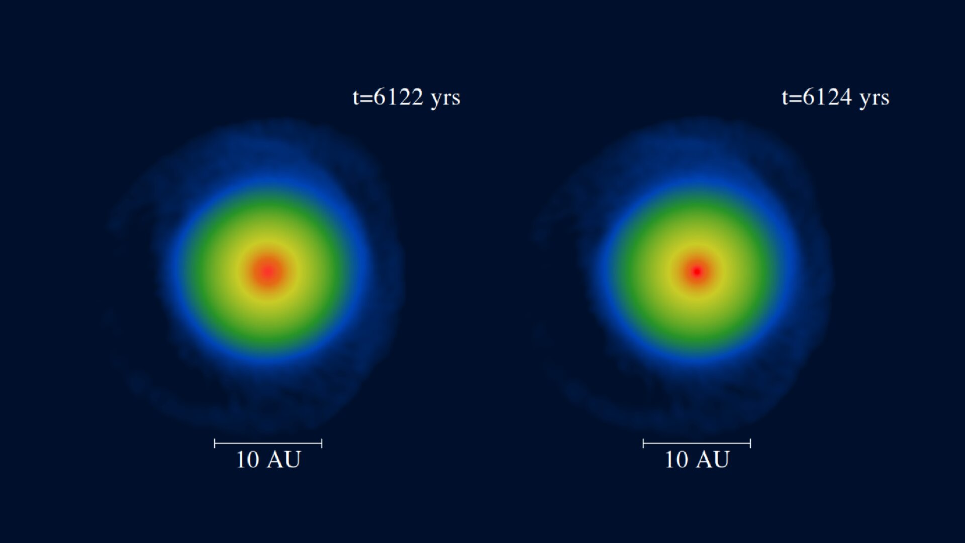 На это ушло полмиллиона часов процессорного времени суперкомпьютерного центра DiRAC — было проведено 9 раундов симуляции с разными параметрами. В результате было смоделировано 107 протопланет разных размеров, каждая из которых в первые десятки тысяч лет формирования принимала форму сильно сплющенного эллипсоида вращения. Специалистам удалось определить, что материя из проплида завихряется и падает не на экватор (то есть не в плоскости вращения), а со стороны полюсов.