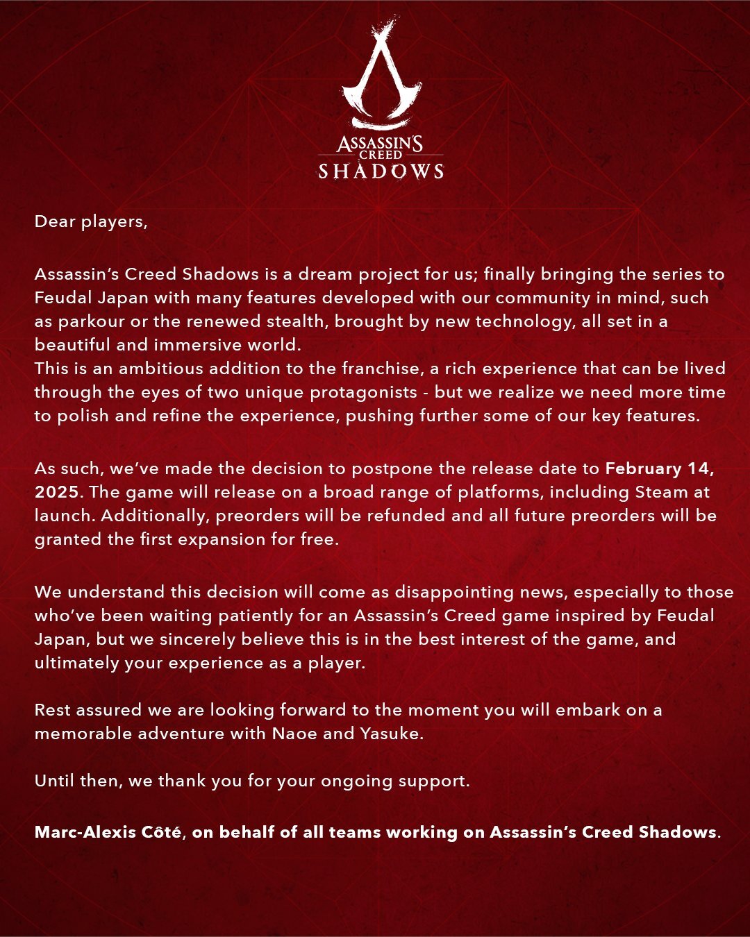 В рамках достаточно большого и совершенно стандартного письма с извинениями представители компании заявили, что им нужно больше времени на полировку проекта. Но на деле ситуация, вероятно, куда хуже, и речь идёт не про полировку, а про переработку экшена, ведь в противном случае переносить столь важный для компании релиз на целых полгода никто бы не стал. И это, конечно, ожидаемо, потому что аудитория от трейлеров и геймплея Assassin’s Creed Shadows, мягко скажем, не в восторге. В Ubisoft допустили массу ошибок в рамках разработки и перепутали элементы сеттинга, выставив характерные элементы китайской культуры за японские. Видимо, теперь пришло время всё это исправить.