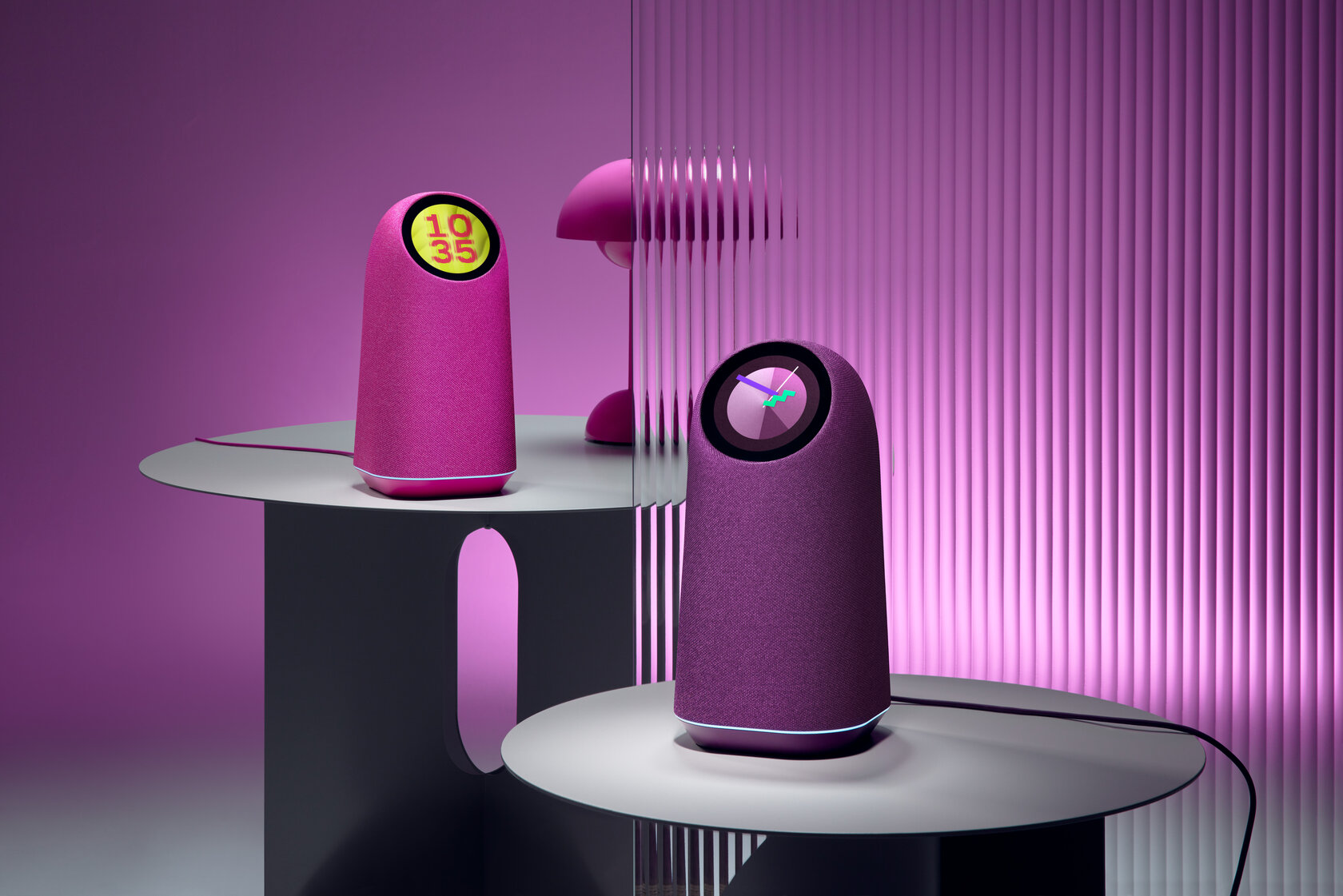 VK выпустила новую умную колонку с Марусей — «Капсулу Про», ставшую флагманской моделью. Разработанная совместно с дизайн-студией Карима Рашида, она получила как и в целом необычную внешность, так и нестандартные элементы — в частности, круглый сенсорный дисплей с кастомизируемыми циферблатами (для колонки каждого цвета используется своя коллекция). Также новинка оснащена 360-градусной подсветкой у основания корпуса.