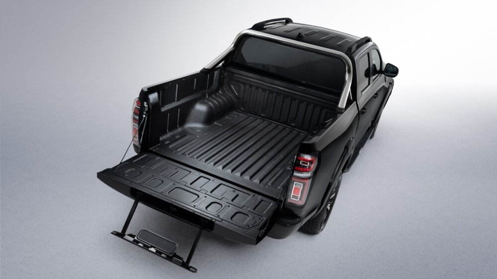 При этом обновлённый GWM Poer отличается от предшественника не только более современным кузовом, но и множеством технических улучшений. Например, пикап получил светодиодную оптику, багажное отделение обзавелось специальным защитным покрытием, плюс в задний борт интегрировали подножку, чтобы проще было забираться в багажник. На крыше автомобиля находятся рейлинги, способные выдерживать до 50 кг веса (в статике), а в багажнике предусмотрена дуга безопасности.
