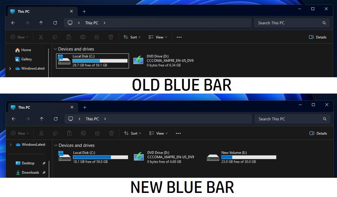 Также журналисты онлайн-издания отметили более тёмный цвет полосы, отражающей заполненность системного диска. Лучше всего данное изменение заметно, если сравнить старую версию «Проводника» с новой.