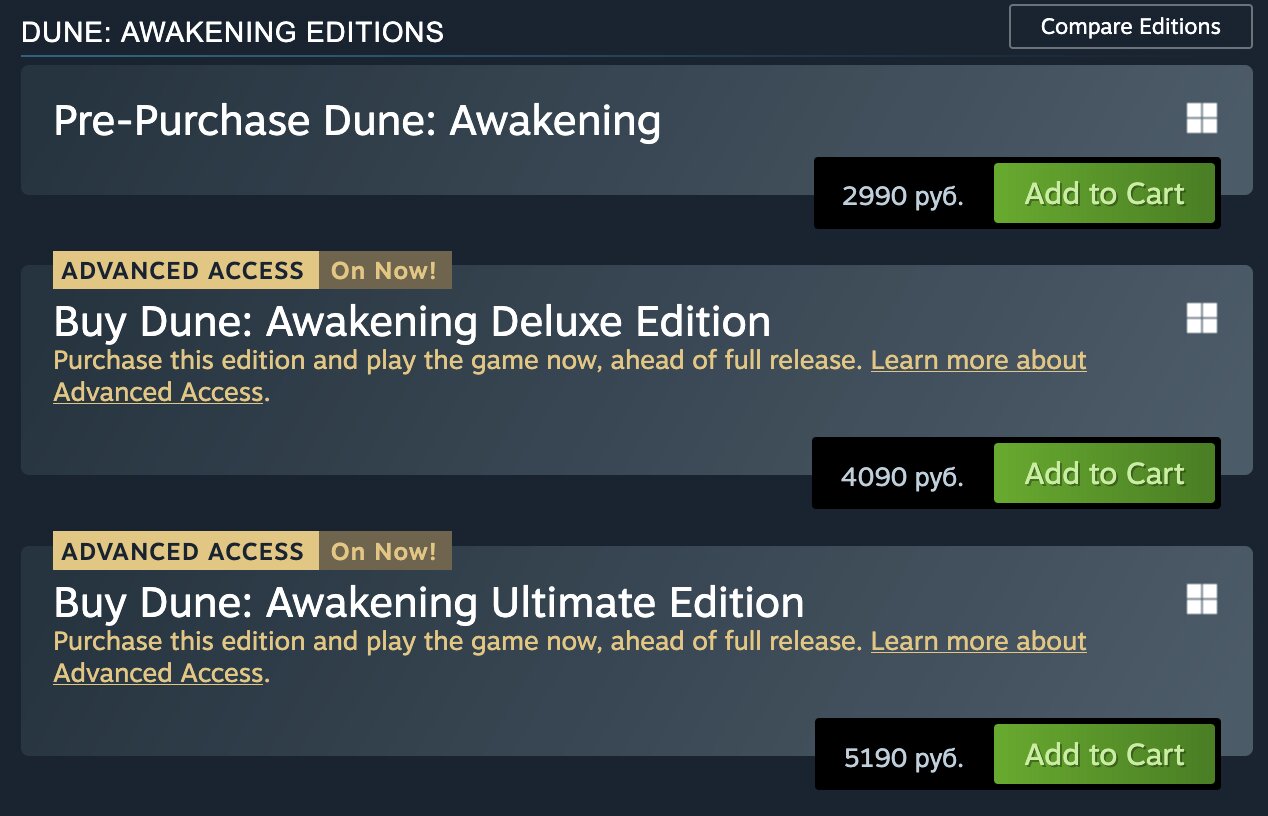 Вчера, 5 июня, разработчики из студии Funcom официально сообщили о раннем запуске мультиплеерной игры Dune: Awakening, который доступен исключительно обладателям расширенных изданий Deluxe Edition и Ultimate Edition, тогда как владельцы обычного издания отправятся покорять цифровой Арракис лишь 10 июня. Впрочем, столь существенное ограничение (Ultimate Edition, например, стоит почти в два раза дороже стандартной версии игры) не помешало игре уже на старте выбиться в топ по продажам Steam и продемонстрировать на этой же платформе 93 тысячи пикового онлайна в вечер четверга.