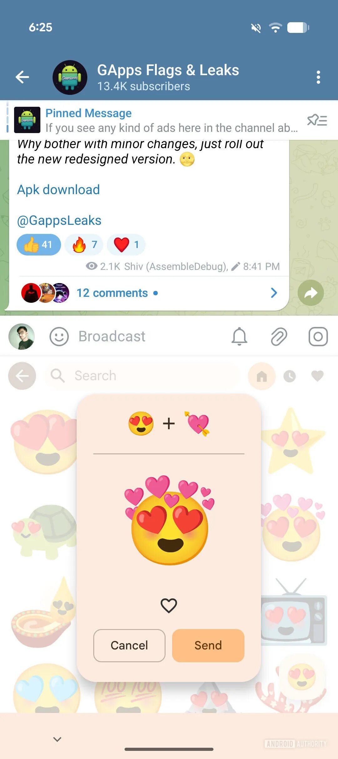 Одно из самых заметных — возможность добавлять любимые комбинации эмодзи из Emoji Kitchen в избранное. Это реально удобно: теперь не придётся каждый раз собирать нужный микс с нуля или искать его среди недавно использованных — всё будет под рукой. Также в Emoji Kitchen появится отдельная строка поиска, хотя она немного дублирует уже существующую функцию поиска по коллекции эмодзи.