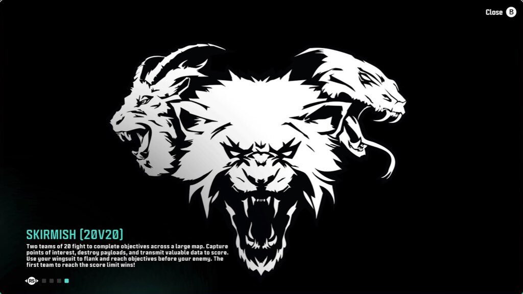 А на третьем слайде указано описание режима Skirmish в конфигурации «20 на 20» — глобального режима сражений между двумя большими командами на огромной карте (можно захватывать точки, уничтожать грузы и передавать данные для получения очков).