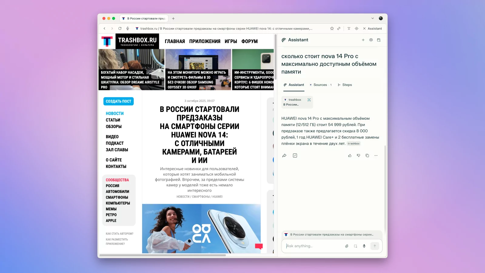 Кроме того, бесплатный доступ позволит широкой аудитории оценить основное преимущество Comet — глубоко интегрированный искусственный интеллект, который способен выполнять множество задач вместо пользователя. Например, на главной странице браузера имеется ИИ-поиск Perplexity, который понимает поисковые запросы на естественном языке, умеет анализировать информацию и составлять ответы на вопросы со ссылками на источники информации. Также ключевой особенностью «Кометы» выступает встроенный персональный помощник на базе ИИ, который «путешествует по интернету вместе с пользователем».