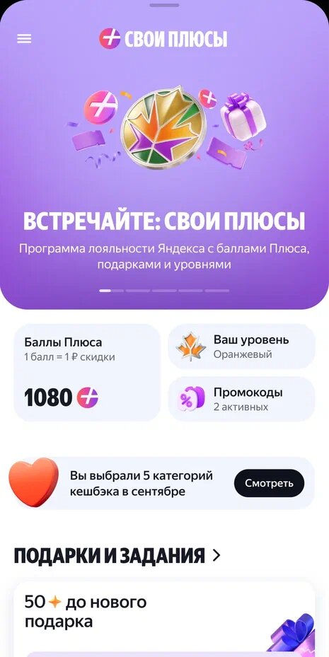 Яндекс запустила новую программу лояльности под названием «Свои Плюсы», которая позволяет более выгоднее и увлекательнее использовать сервисы компании. Пользователи могут зарабатывать баллы, участвовать в розыгрышах, получать подарки и продвигаться по уровням, открывая дополнительные возможности. Баллы Плюса уже давно стали популярным среди пользователей, в новой программе появятся игровые механики — персональные задания, за которые пользователи будут получать подарки, например, дополнительные опции к подписке Яндекс Плюс, промокоды на скидки до 1 500 рублей и призы в еженедельных розыгрышах.