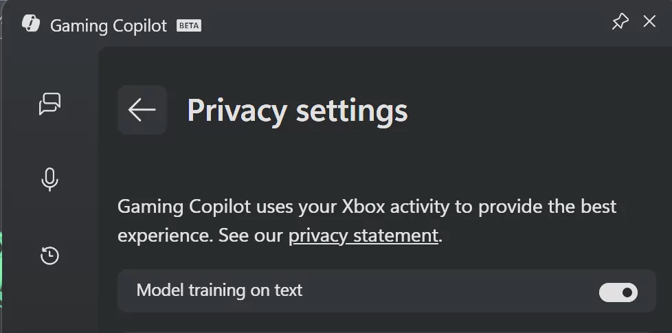 Безусловно, все вышеперечисленные опции можно отключить («Игровая панель» → Gaming Copilot → иконка шестерёнки → «Настройки конфиденциальности» → отключить пункт Model training on text), чтобы перекрыть доступ компании к контенту, которым геймеры делиться не хотят. Проблема только в том, что с огромной долей вероятности миллионы геймеров со всего мира даже не подозревают о том, что их данные собирают и используют таким образом.